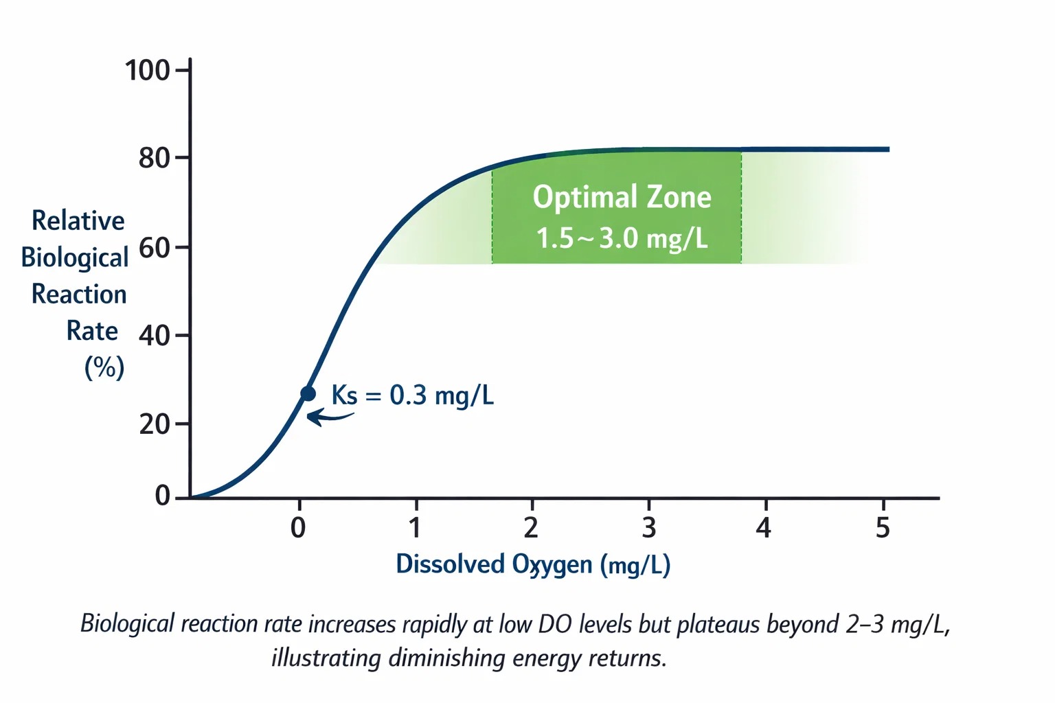Dit verklaart waarom de meeste zuiveringsinstallaties zich hierop richten 1,5–3,0 mg/l DO .