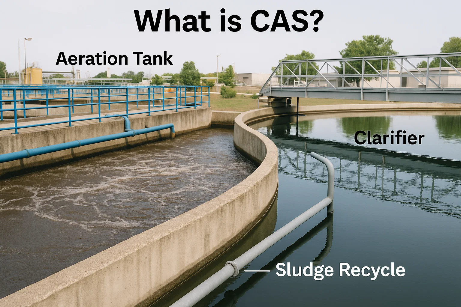 CAS is een eenvoudig, effectief mixer-settler-model dat creëert de perfecte omstandigheden voor micro-organismen om verontreinigende stoffen te eten, en scheidt deze micro-organismen vervolgens van het schone water.