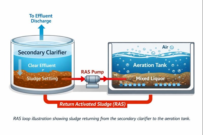 Actiefslibsystemen zijn afhankelijk van micro-organismen om verontreinigende stoffen af te breken. Zonder RAS gaat slib verloren via de bezinkinstallatie, neemt de biomassa af en neemt de behandelingsefficiëntie in de loop van de tijd af.