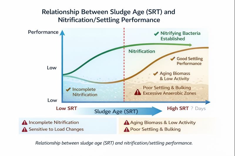 Slibleeftijd (SRT) is de gemiddelde tijd dat biomassa in het systeem blijft. Het bepaalt: